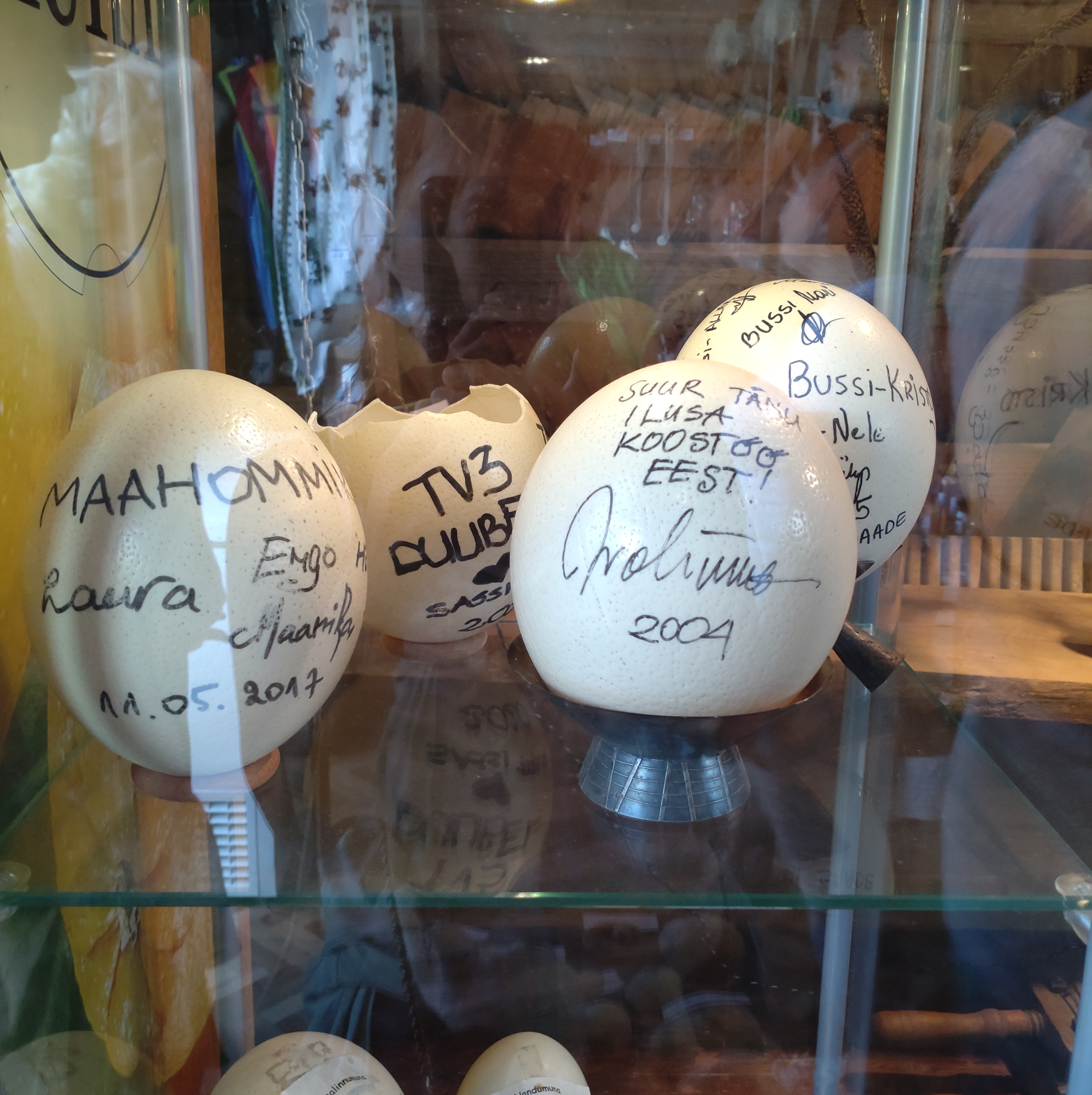 - ダチョウの卵の殻に描かれた誰かのサイン
