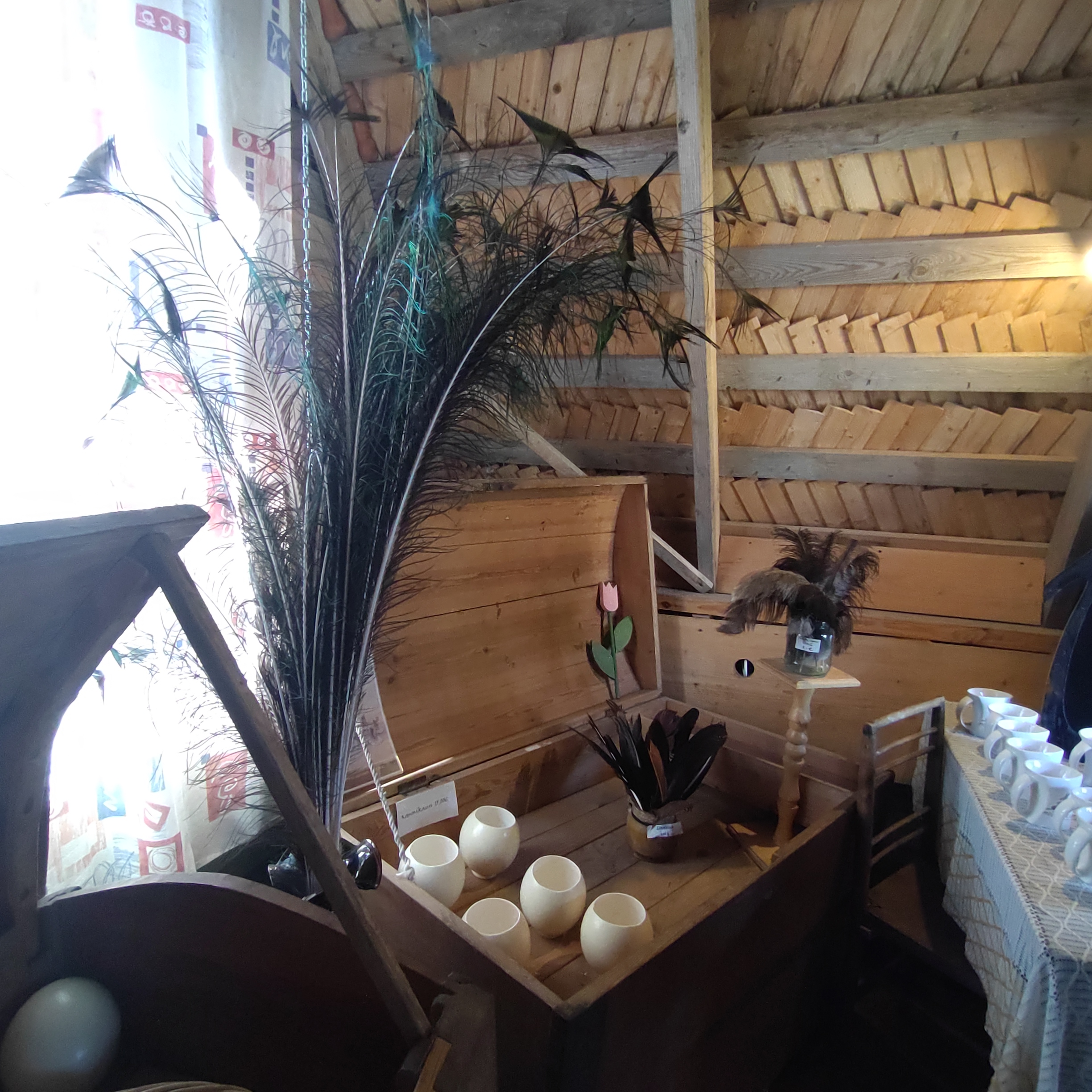 - ダチョウやクジャクの羽も買えます。横にある卵の殻の器がオシャレ!