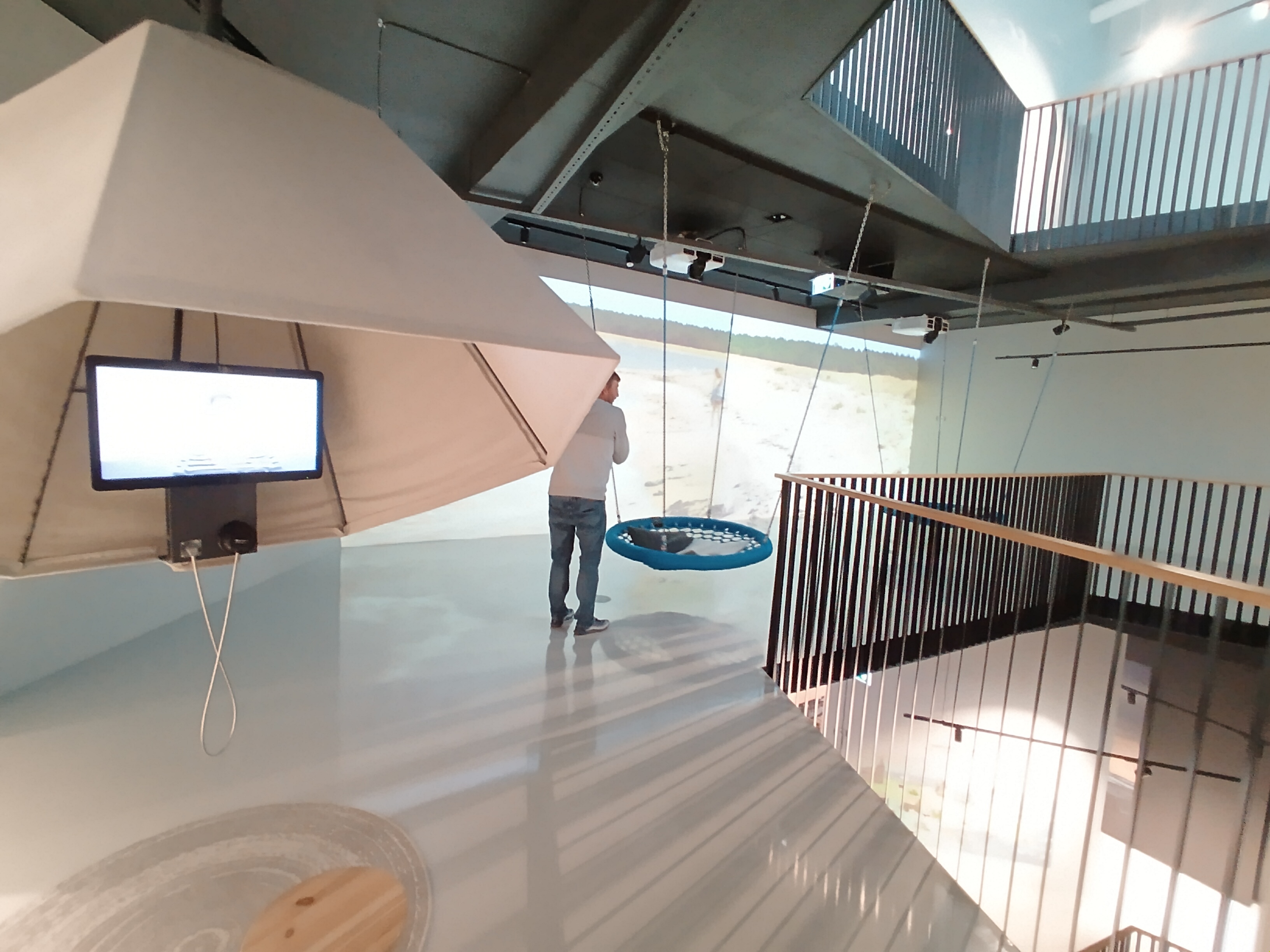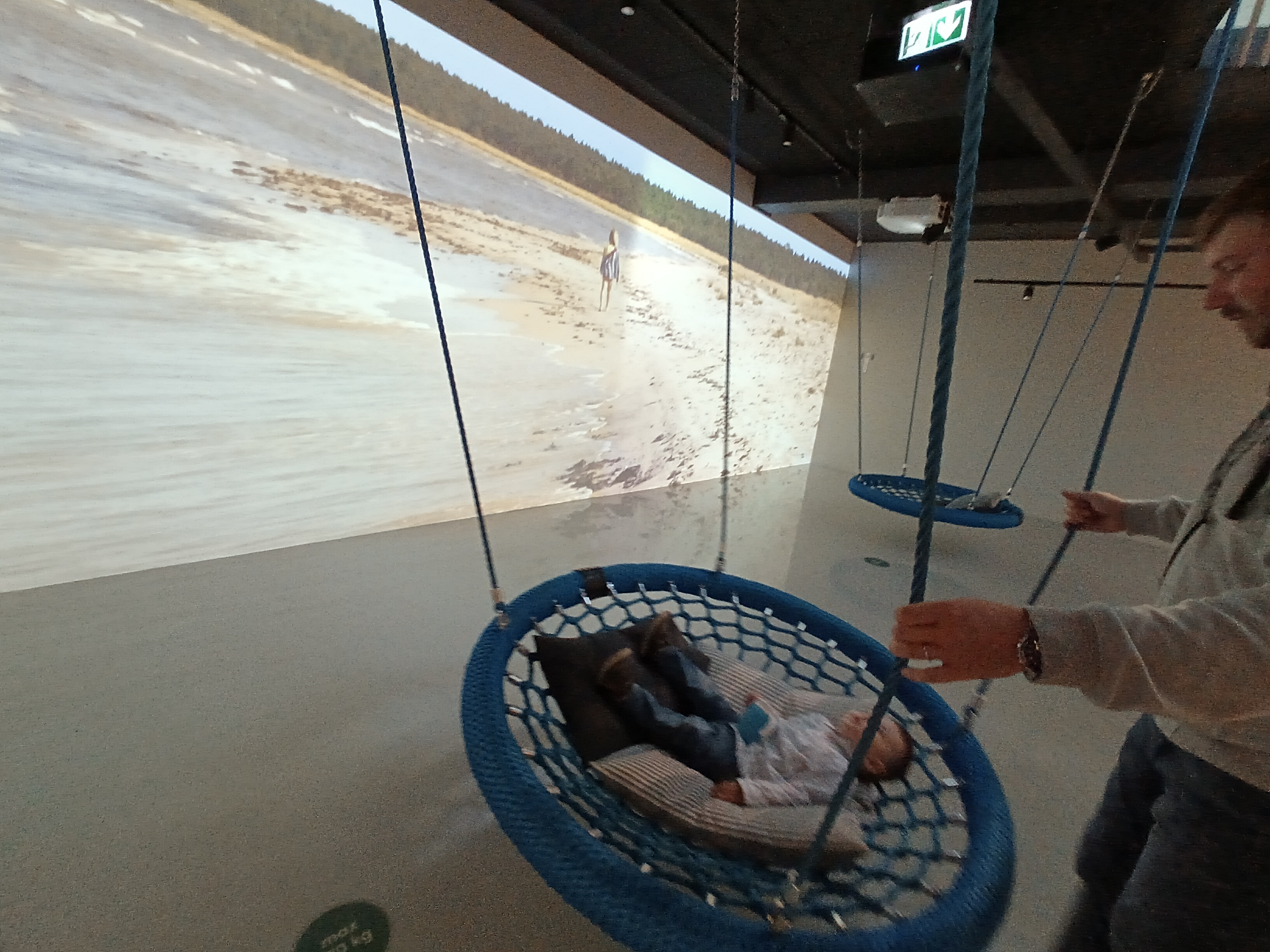 壁に海岸が映し出され、ハンモックイスに座りながら、リラックスしたり、小さいお子さんが遊べるスペースがありました。