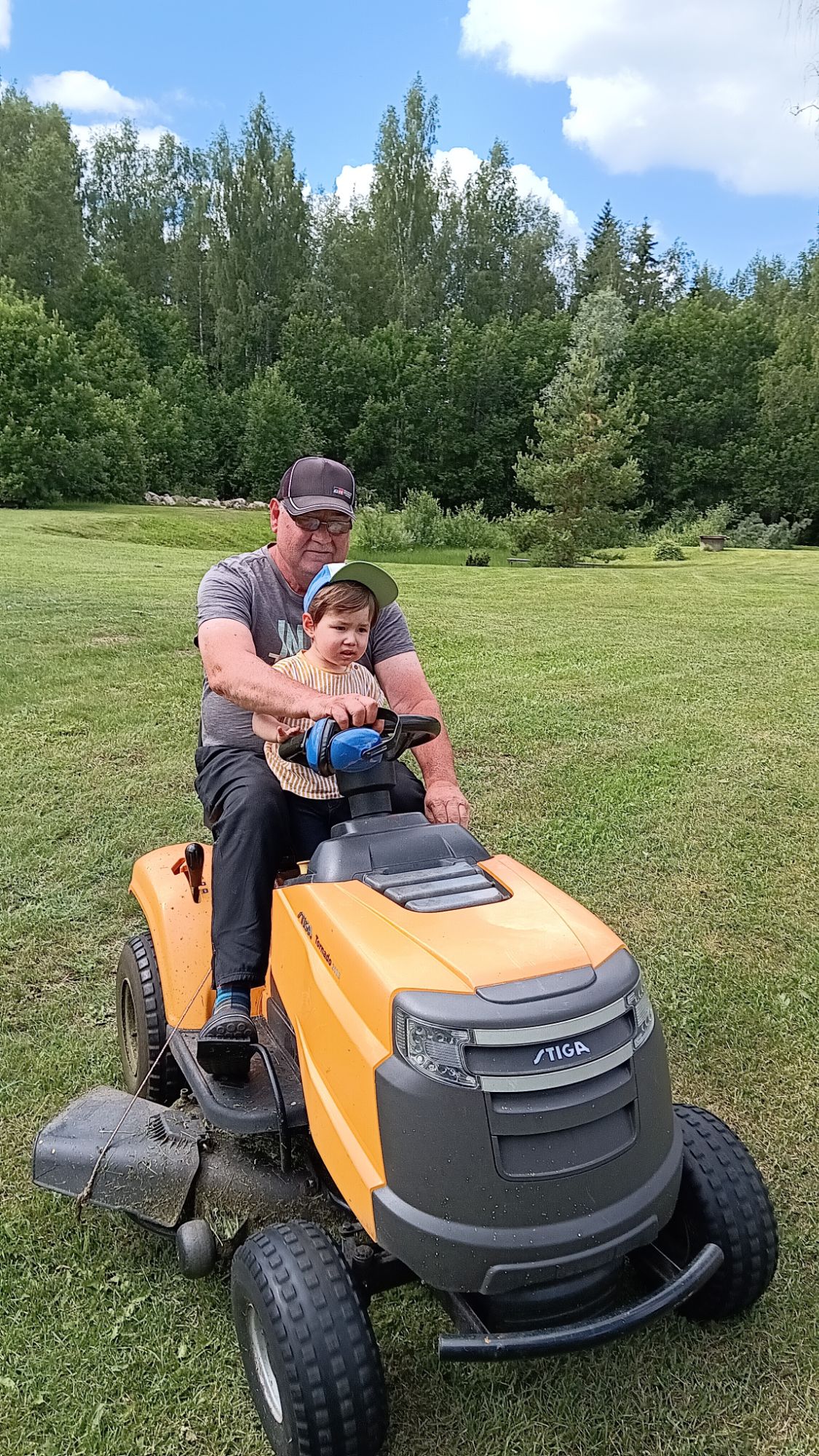 - 芝刈り機に乗せてもらいました。