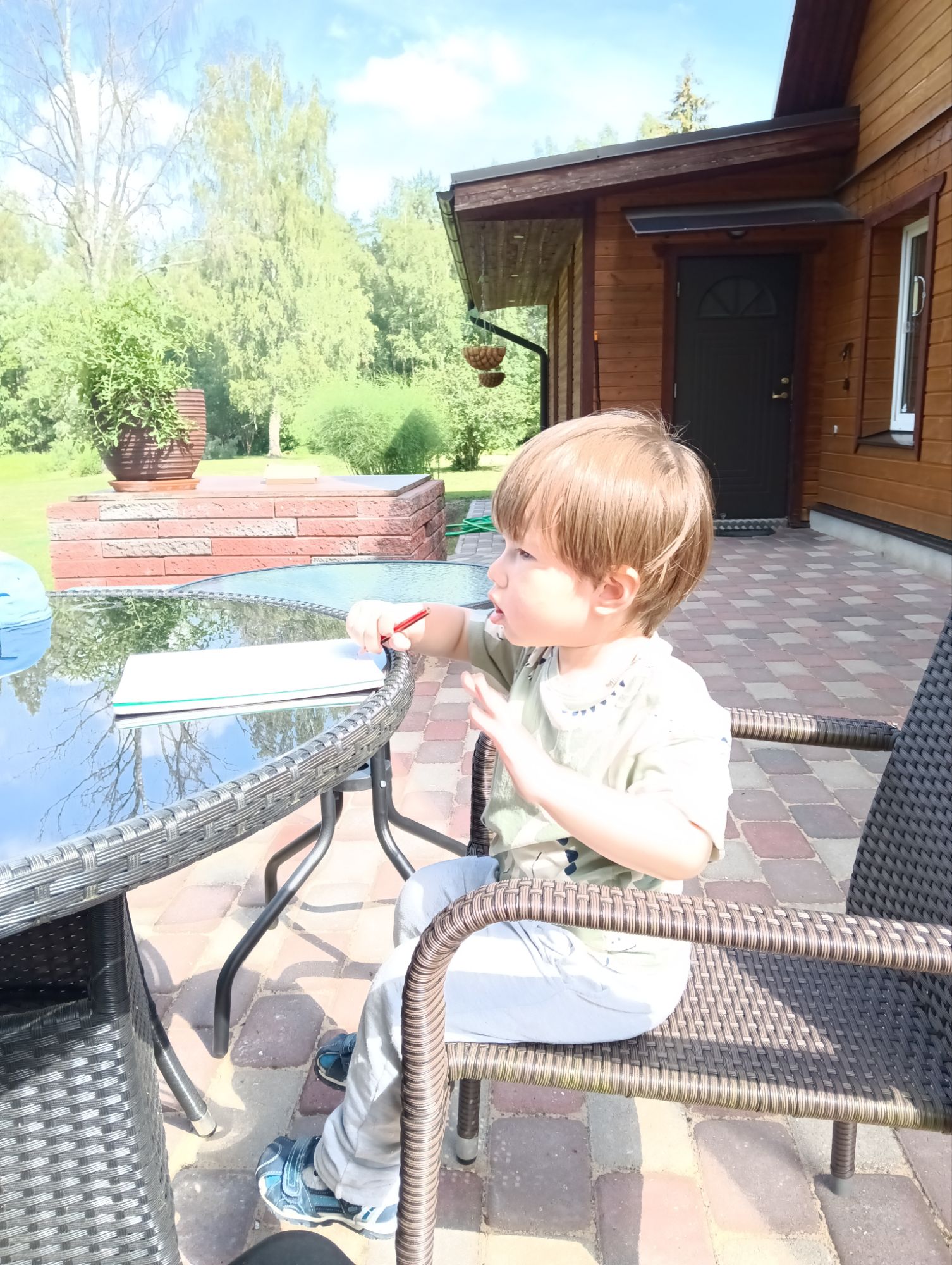 - 外でお絵かき。