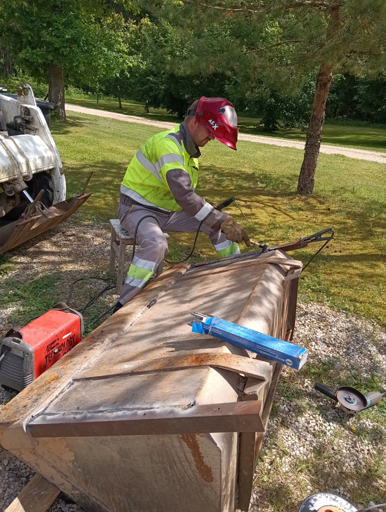 - 溶接する夫。
