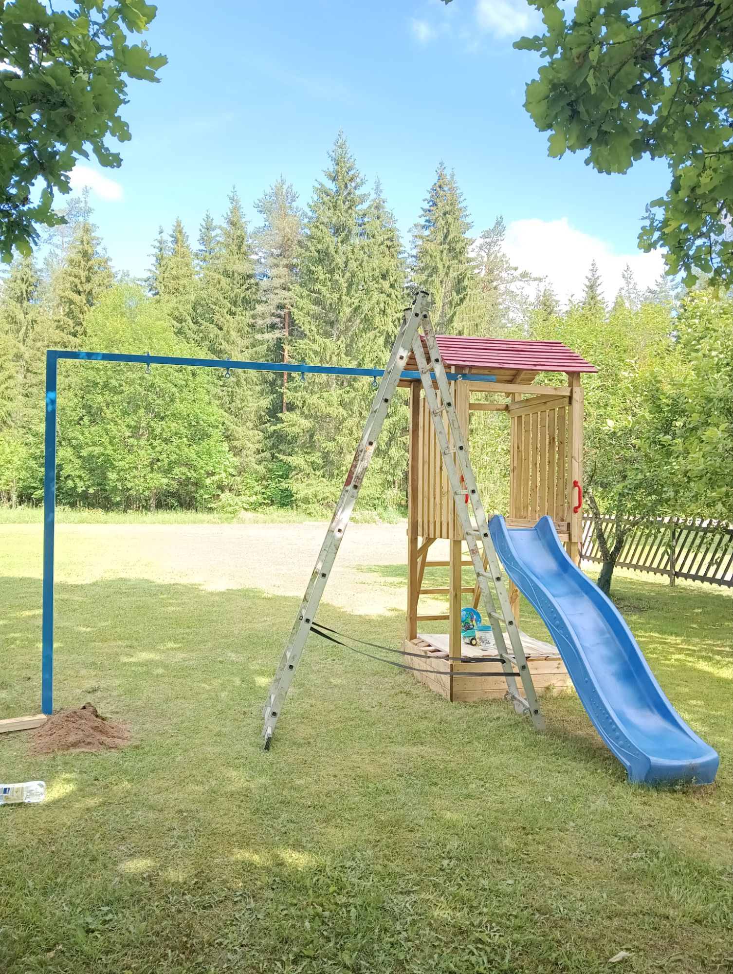 義実家には、子供の遊び場を少しずつ作っていて、最初は滑り台、次に砂場、ブランコ・・・と着々と進んでいます。