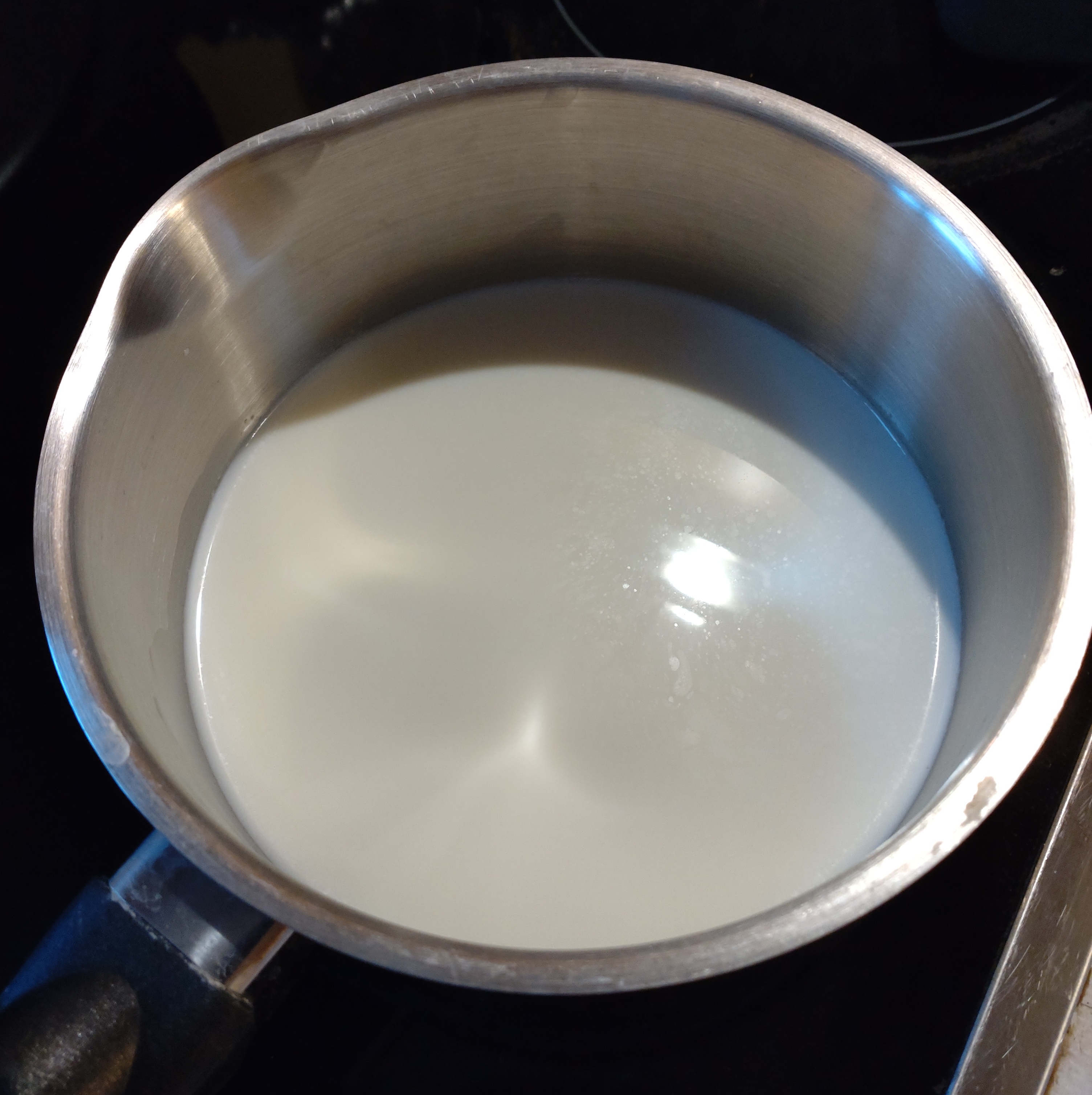 - 牛乳を40度くらいに温める。この時オーブンを、180度に予熱する。