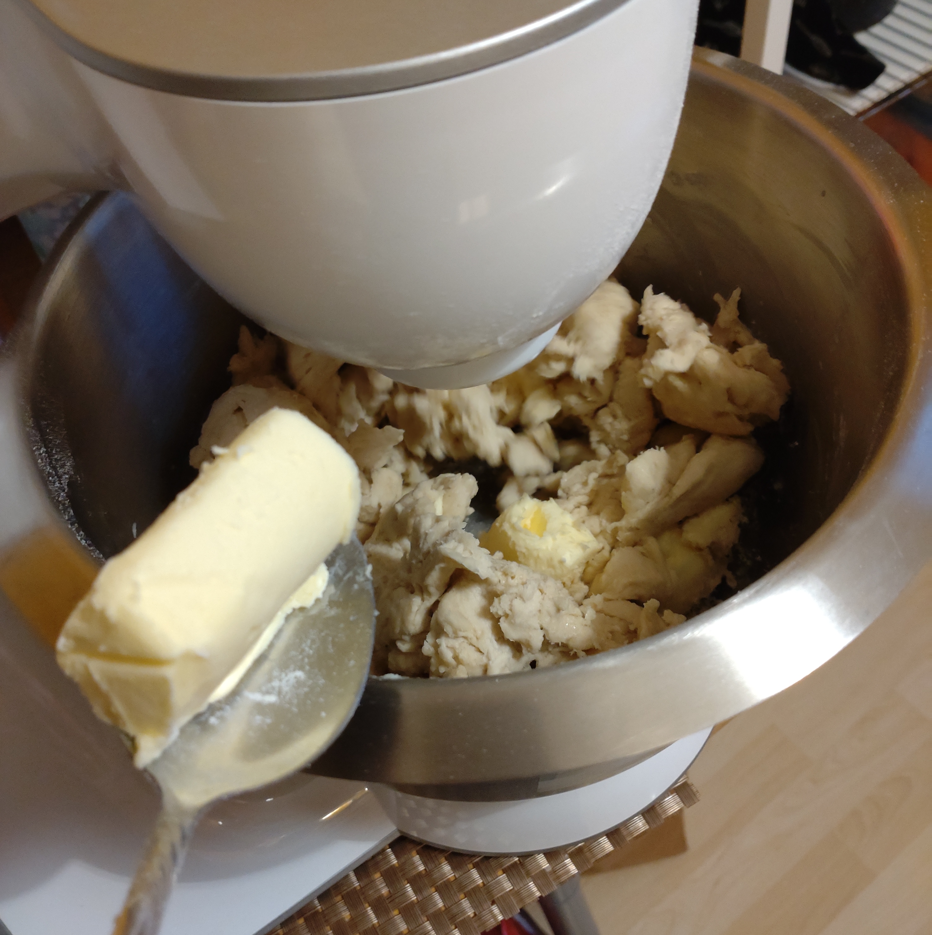 - 次に小麦粉、カルダモン、室温に置いた柔らかいバター、を加える。