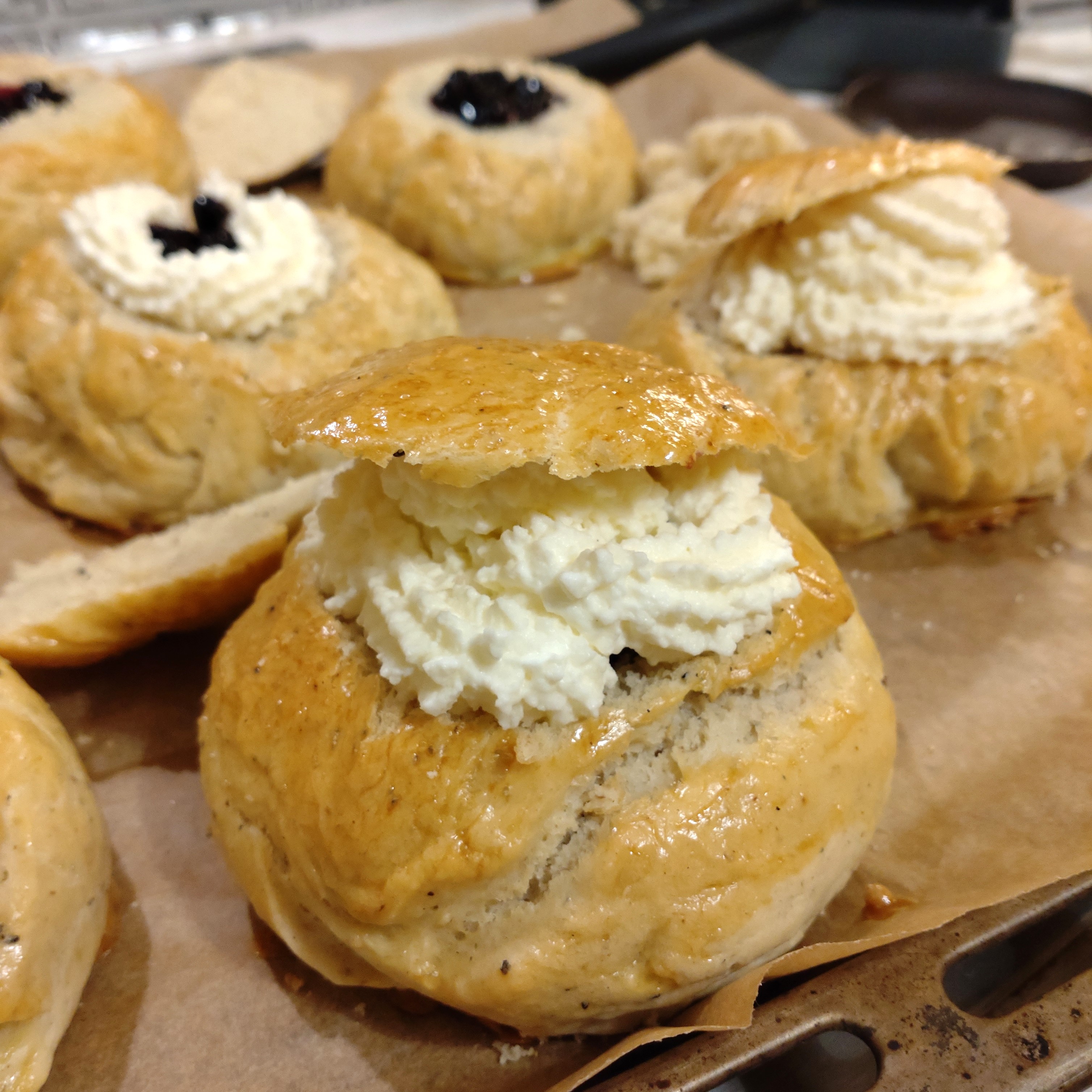 ヴァストラクッケルは、丸いバンズの頭部を完全に切り取り、クリームを挟んでいます。