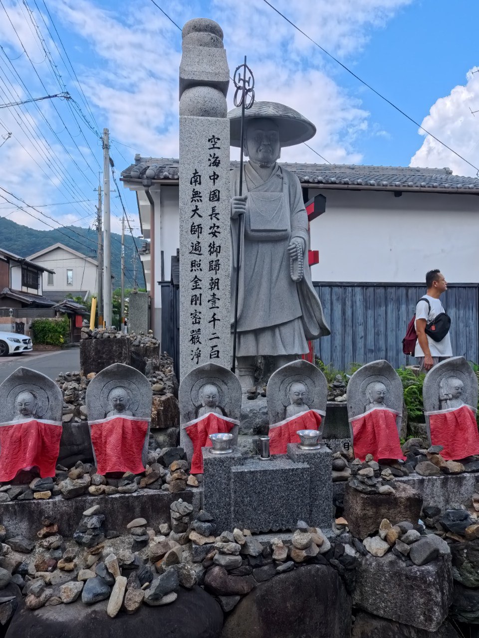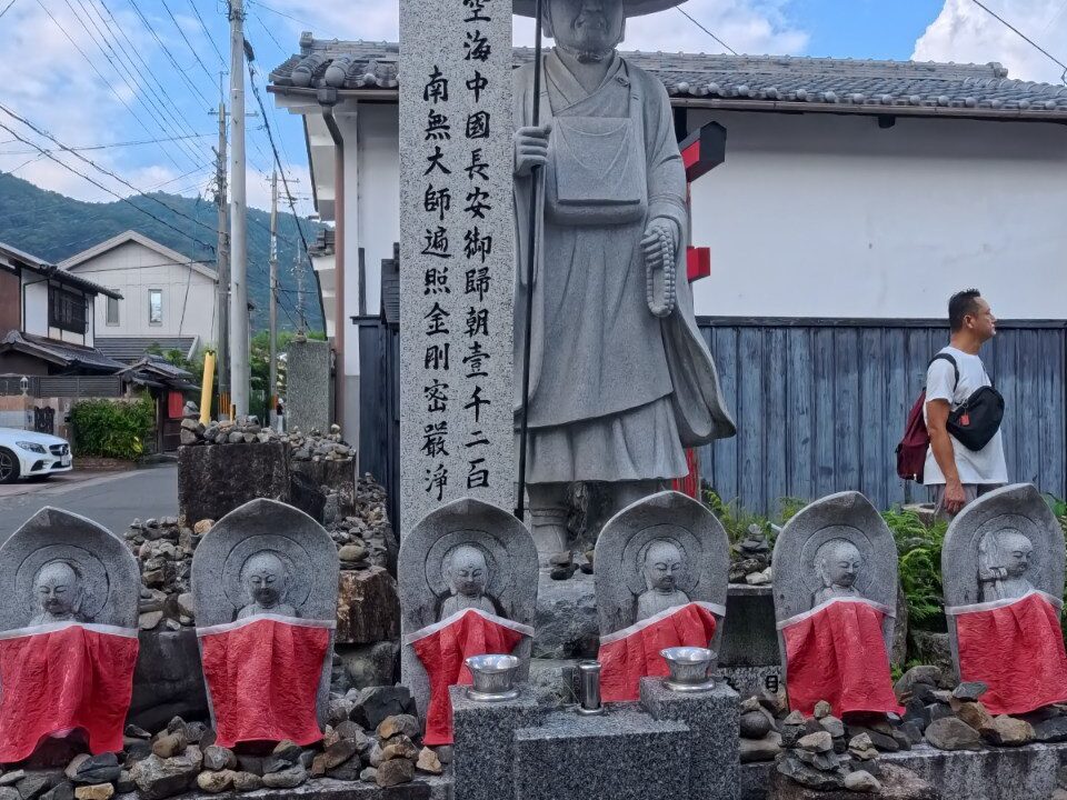 たくさん並ぶお地蔵様と空海の像;「日本の文化は仏教徒と深いつながりがあることが分かります。こうして道行く人や旅人を守ってくれているのですね」