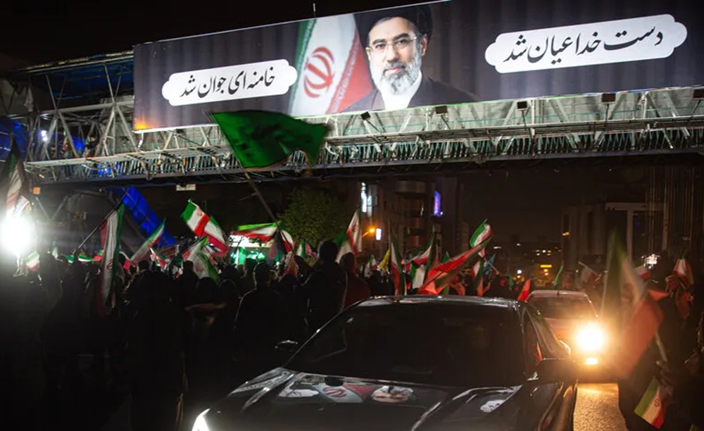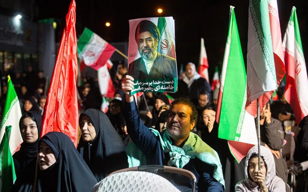新最高指導者のモジタバー師への支持を訴える人々、テヘランで